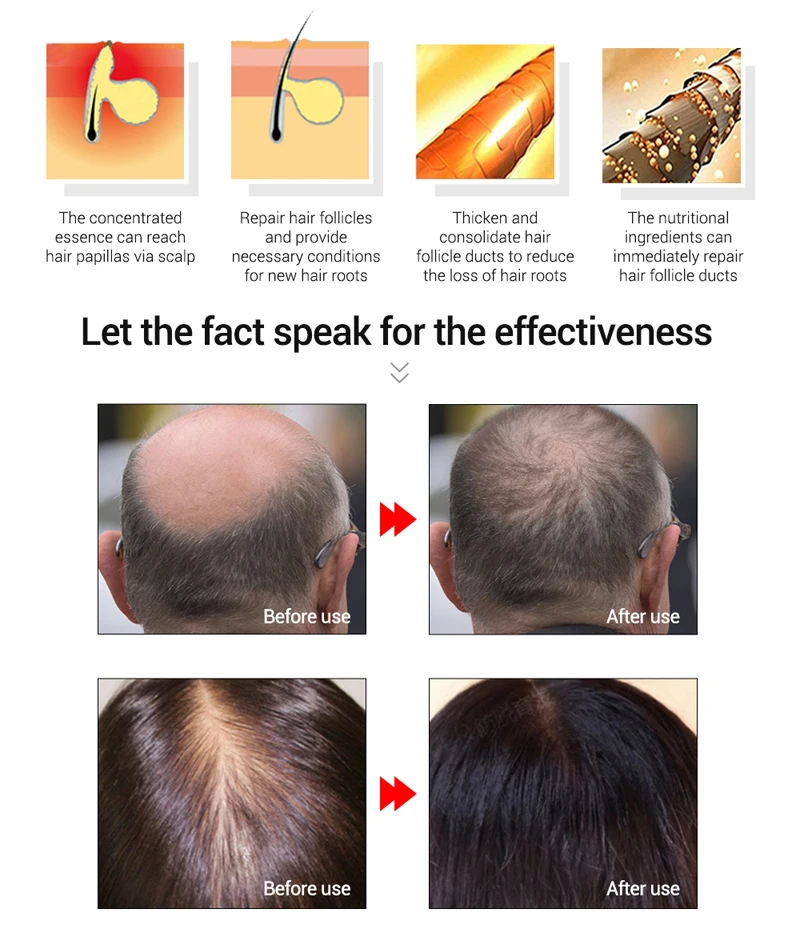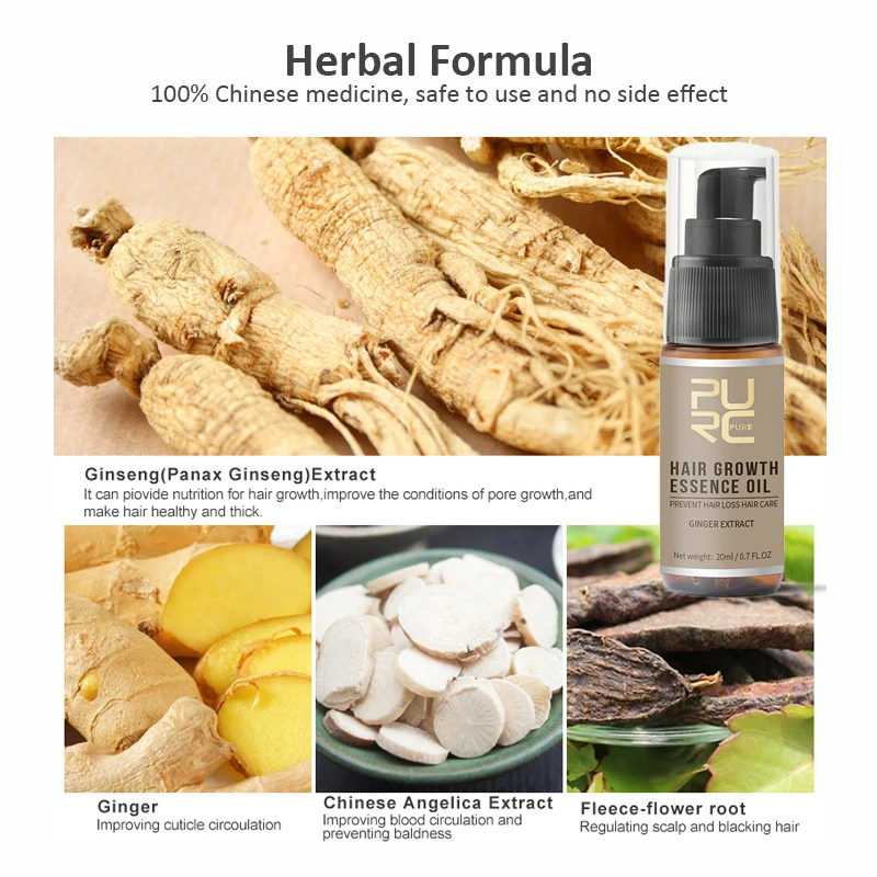 ② PURC Hair Growth Essence Oil: Ginger,mint,ginseng,gentian and licorice scientific collocation effective help hair regeneration.About 7-15 days,we can see a significant effect.